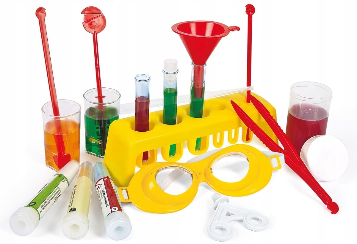 Все детские наборы для опытов являются многокомпонентными, включают аксессуары для проведения увлекательных экспериментов. Конкретика составляющих зависит от того, в каком направлении сформирован комплект. Типичными составляющими являются игрушечные лабораторные инструменты, реактивы, инструкция для опытов.
