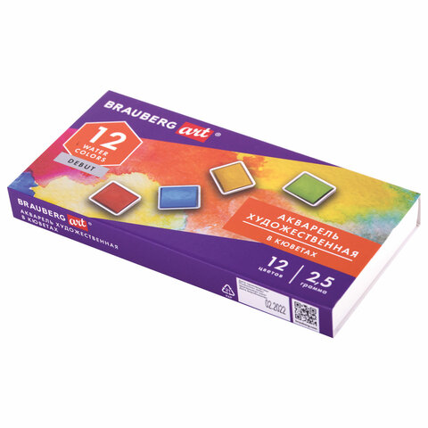 Акварель художественная в кюветах НАБОР 12 цветов по 2,5 г, BRAUBERG ART DEBUT
