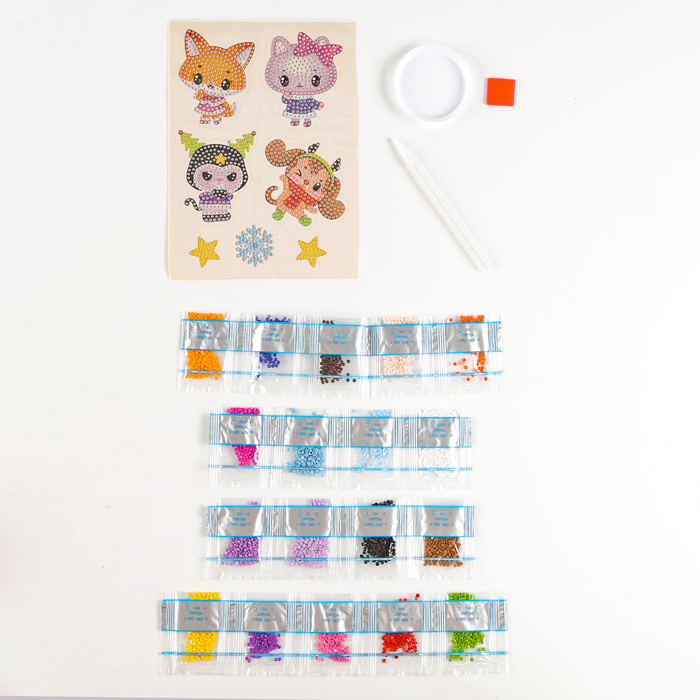 Алмазная мозаика - стикер на новый год для детей с частичным заполнением «Милые зверюшки», набор для