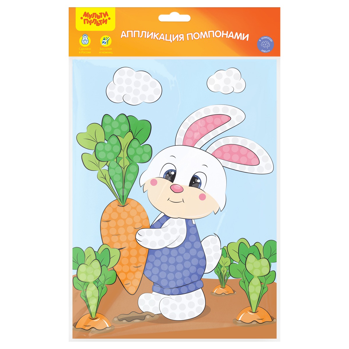 Аппликация помпонами Мульти-Пульти "Зайчик", 20*28см, с раскраской, европодвес