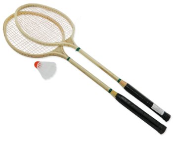 Ракетки деревянные, светлые, сетка – красно-белая.
