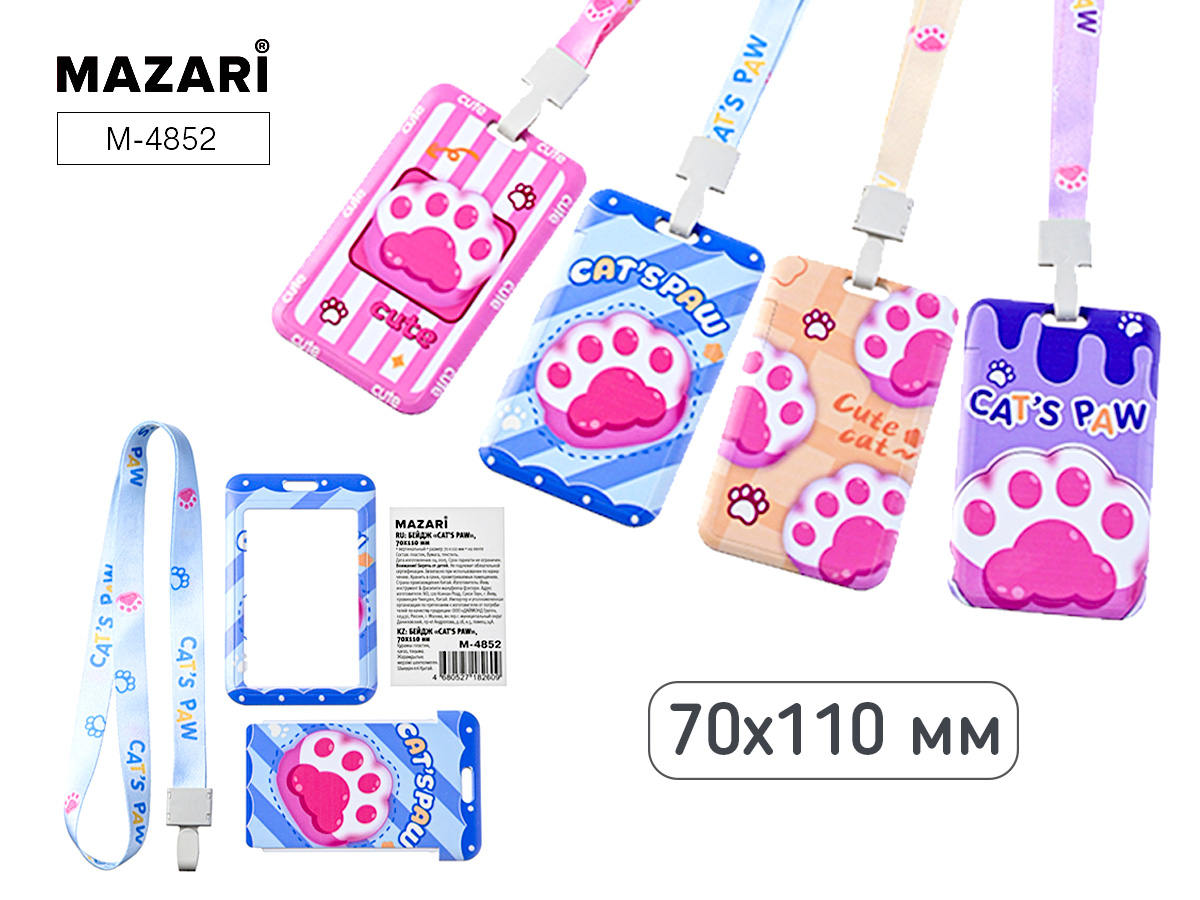 Бейдж 70*110 мм вертикальный "Лапки", на шнурке