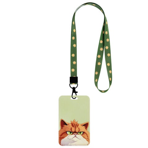 Бейдж вертикальный с 3D-печатью "Котик" (85х54 мм), лента 45 см, СЛАЙДЕР, FUNSTER