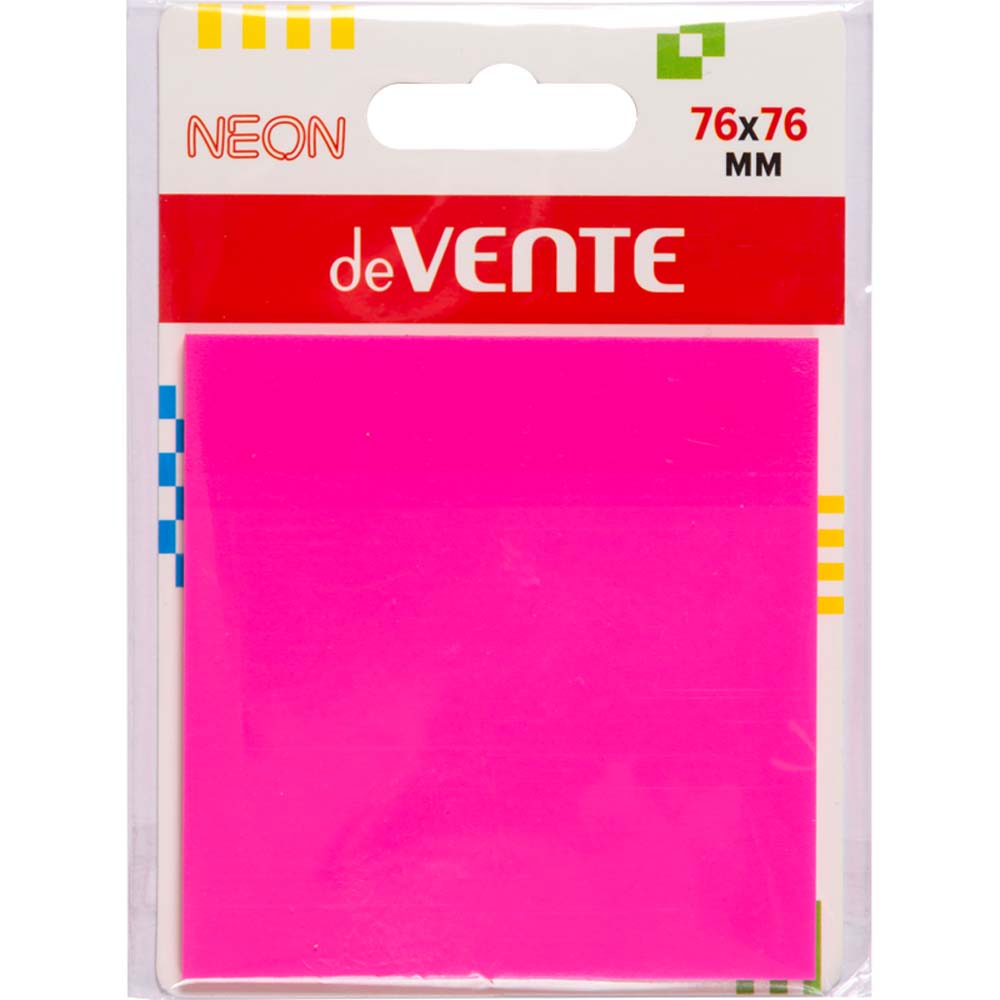 Блок с липким краем (76х76мм) 50л, пластиковый, полупрозрачный, неон малиновый deVENTE