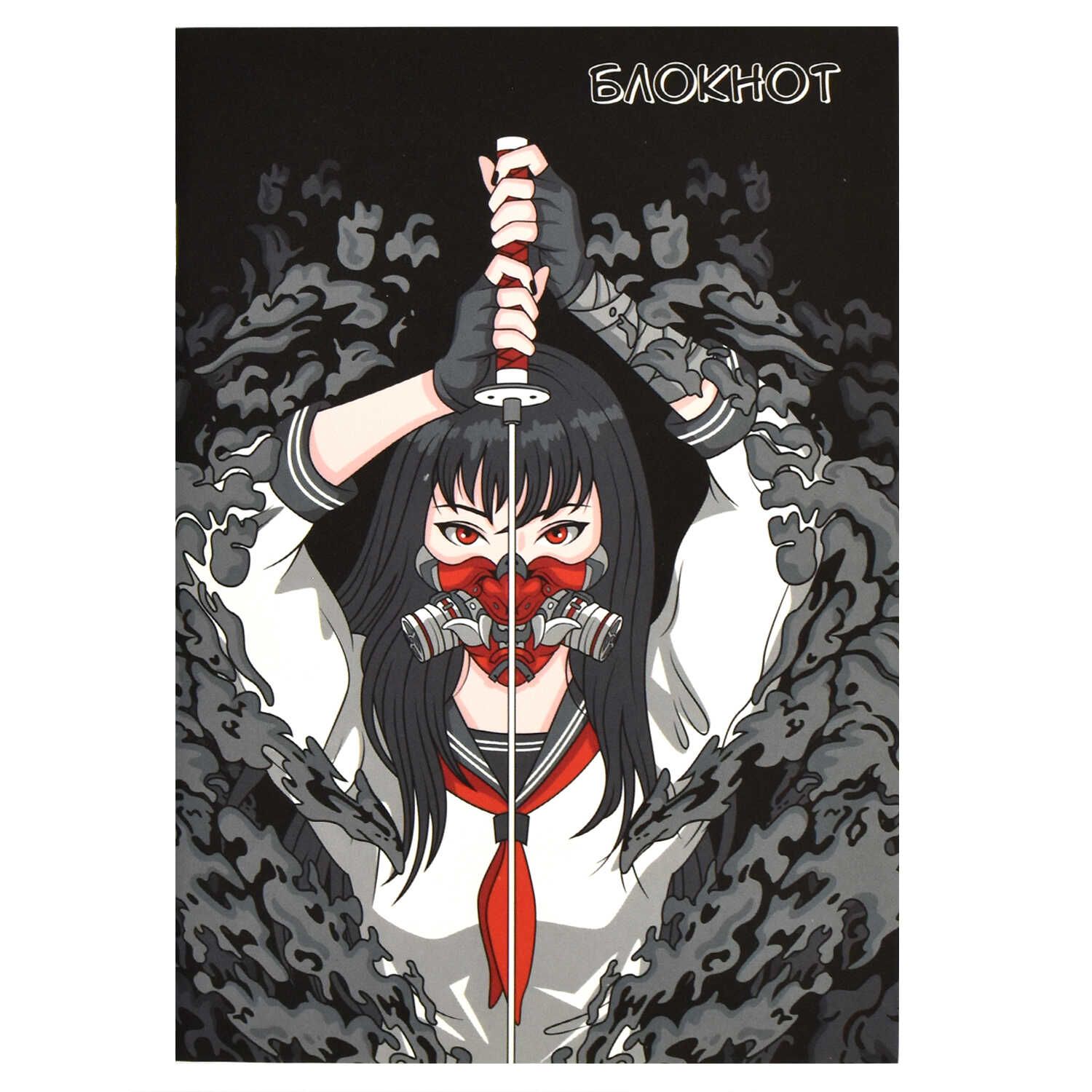 Блокнот 120*170мм 40л скоба "Танец с катаной" в точку, софт тач вельвет