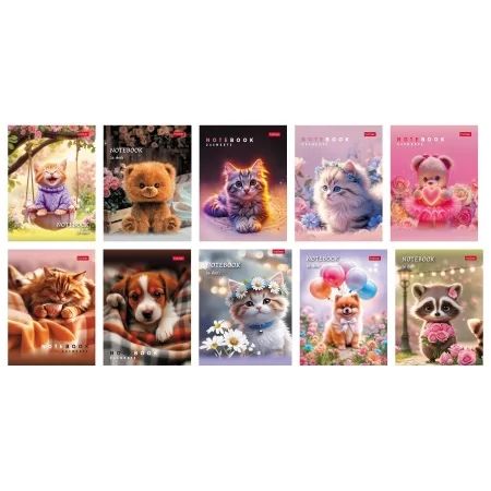 Блокнот А6 24л скоба "Маленькие ушки" клетка, глянц.лам., 10диз.в блоке