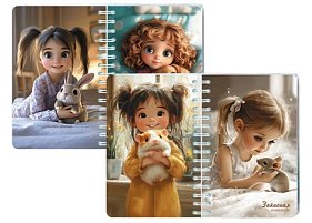 Блокнот-перевертыш А6 80л гребень "Девочки и зверята" кл. Апплика 249139