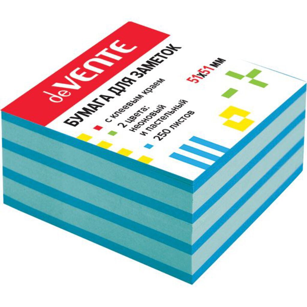 Бумага с липким краем (51*51мм) 250л, голубой НЕОН+ПАСТЕЛЬ deVENTE