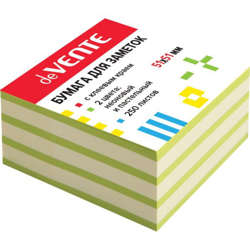 Бумага с липким краем (51*51мм) 250л, зеленый НЕОН+ПАСТЕЛЬ deVENTE
