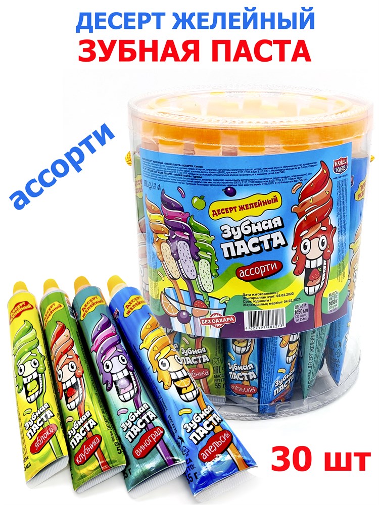 Десерт желейный Зубная паста ассорти (Канди Клаб) (JEL035-1) 55 мл*8 банок*30 шт