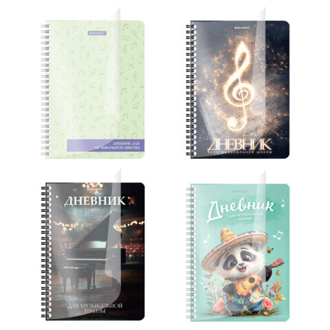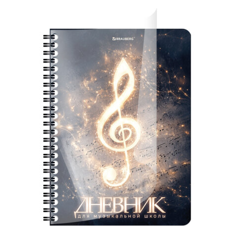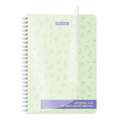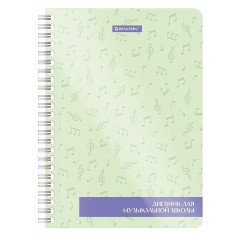 Дневник для музыкальной школы 48 листов, гребень, пластиковая обложка, картон, BRAUBERG, "МИКС", 107