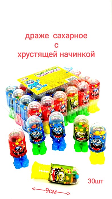 Драже Монстрик - попрыгун сахарное с хрустящей начинкой (Канди Клаб) (DRG075) 7 гр*12 бл*30 шт
