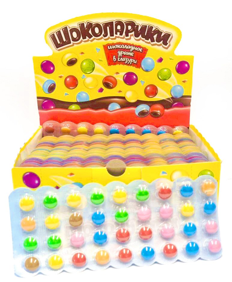 Драже шоколадное на блистере Шоколарики в глазури (Канди Клаб) (CHK014) 20 гр*12 бл*24 шт