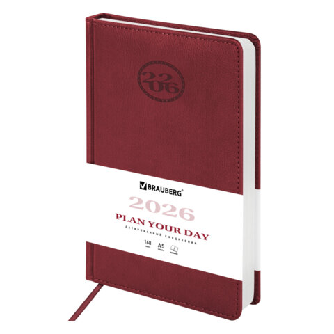 Ежедневник датированный 2026, А5, 138x213 мм, BRAUBERG "Favorite", под кожу, бордовый