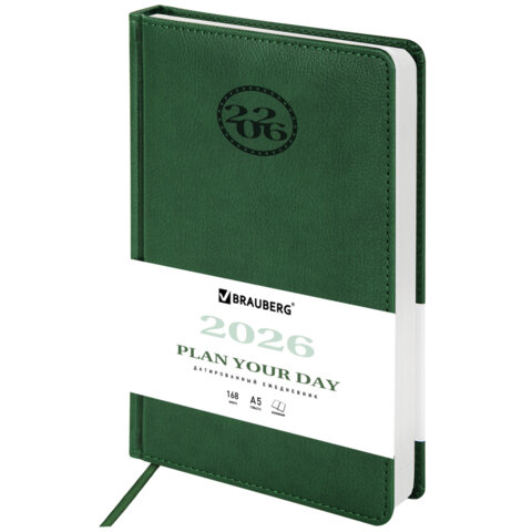 Ежедневник датированный 2026, А5, 138x213 мм, BRAUBERG "Favorite", под кожу, зеленый