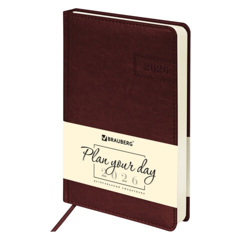 Ежедневник датированный 2026 А5 138x213 мм, BRAUBERG "Imperial", под кожу, коричневый, 117061
