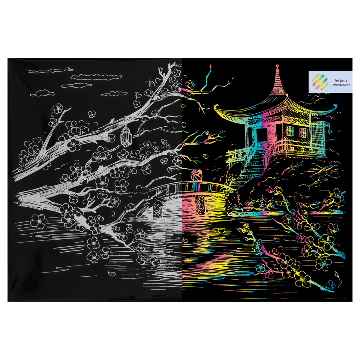 Гравюра с голографическим эффектом ТРИ СОВЫ "Япония", А3