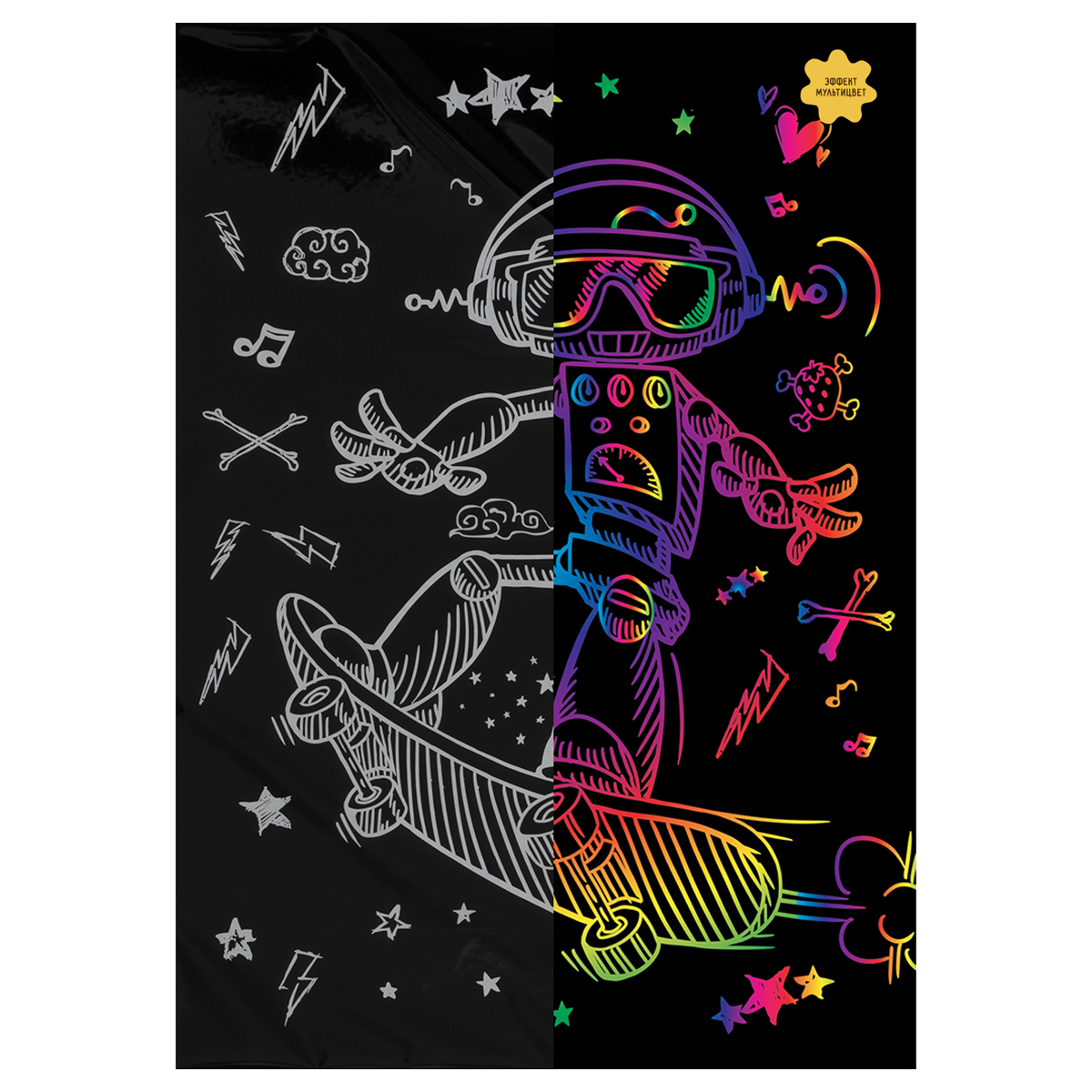 Гравюра с мультицветной основой ТРИ СОВЫ "Робот на скейте", А4