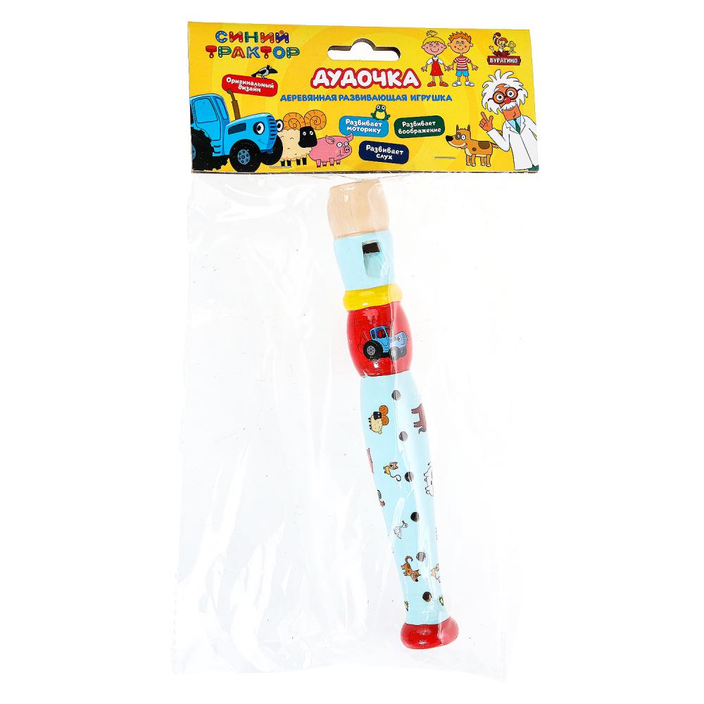 Игрушка деревянная СИНИЙ ТРАКТОР дудочка 23 см, пакет, хедер Буратино в кор.400шт
