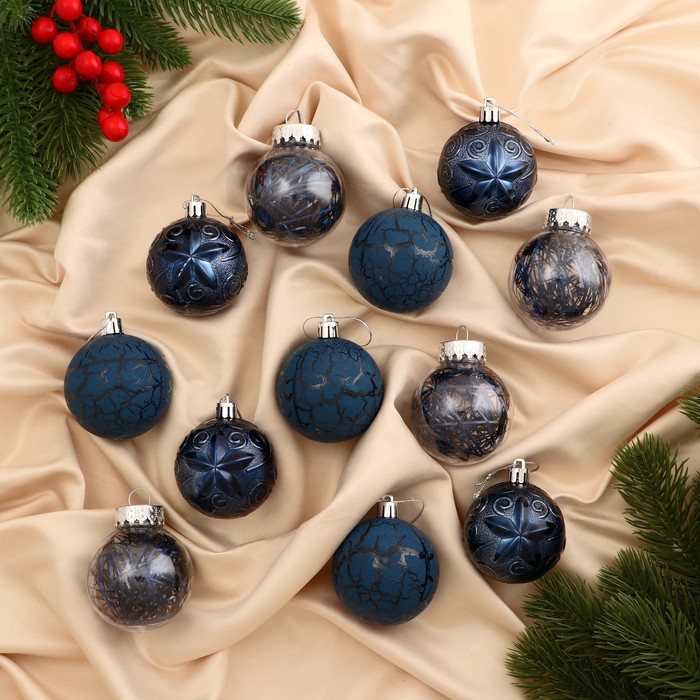 Ёлочные игрушки «Зимняя музыка», шары новогодние, набор d=6 см, 12 шт., узор, синий