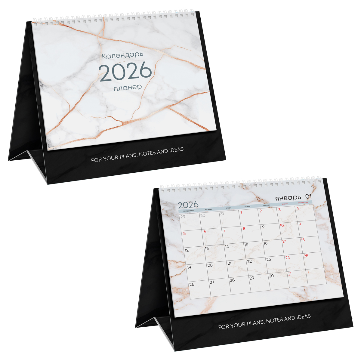 Календарь-планер настольный перекидной BG "Минимализм" на 2026 год – незаменимая вещь на рабочем столе и отличный помощник для офиса. Размер горизонтального календаря – 190*140 мм, тип скрепления – гребень/спираль. Календарь имеет подложку с рисунком и 12 листов. Календарная сетка-планер будет удобна для записи дел и важных событий. Календарный блок изготовлен из мелованной бумаги плотностью 115 г/м2. Твердая нижняя подложка изготовлена с использованием переплетного картона толщиной 1,25 мм. Индивидуальная упаковка в пакет с европодвесом. Современному человеку необходимо систематизировать свой день, назначать встречи, быть пунктуальным. Настольный календарь-планер незаменим в этом вопросе. • Размер: 190*140 мм; • Кол-во гребней: 1; • Ориентация: горизонтальная; • Подложка: твердая.