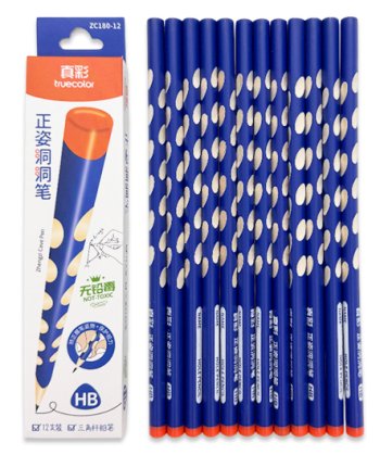 Карандаш пр. DL-128 (HB) трехгранный, синий деревянный корпус с насечками, незаточенный