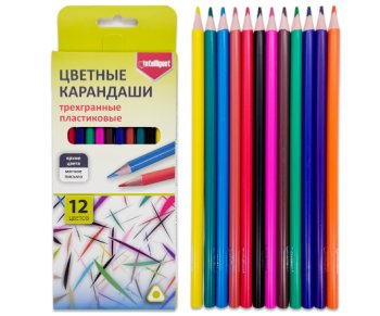 Карандаши 12 цв. INTELLIGENT DN-3502 "Линии" трехгранные, пластиковые, заточенные, в к/к