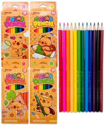 Карандаши 12 цв. Yalong YL251003-12 "Капибара" трехгранный корпус, дерево, заточенные