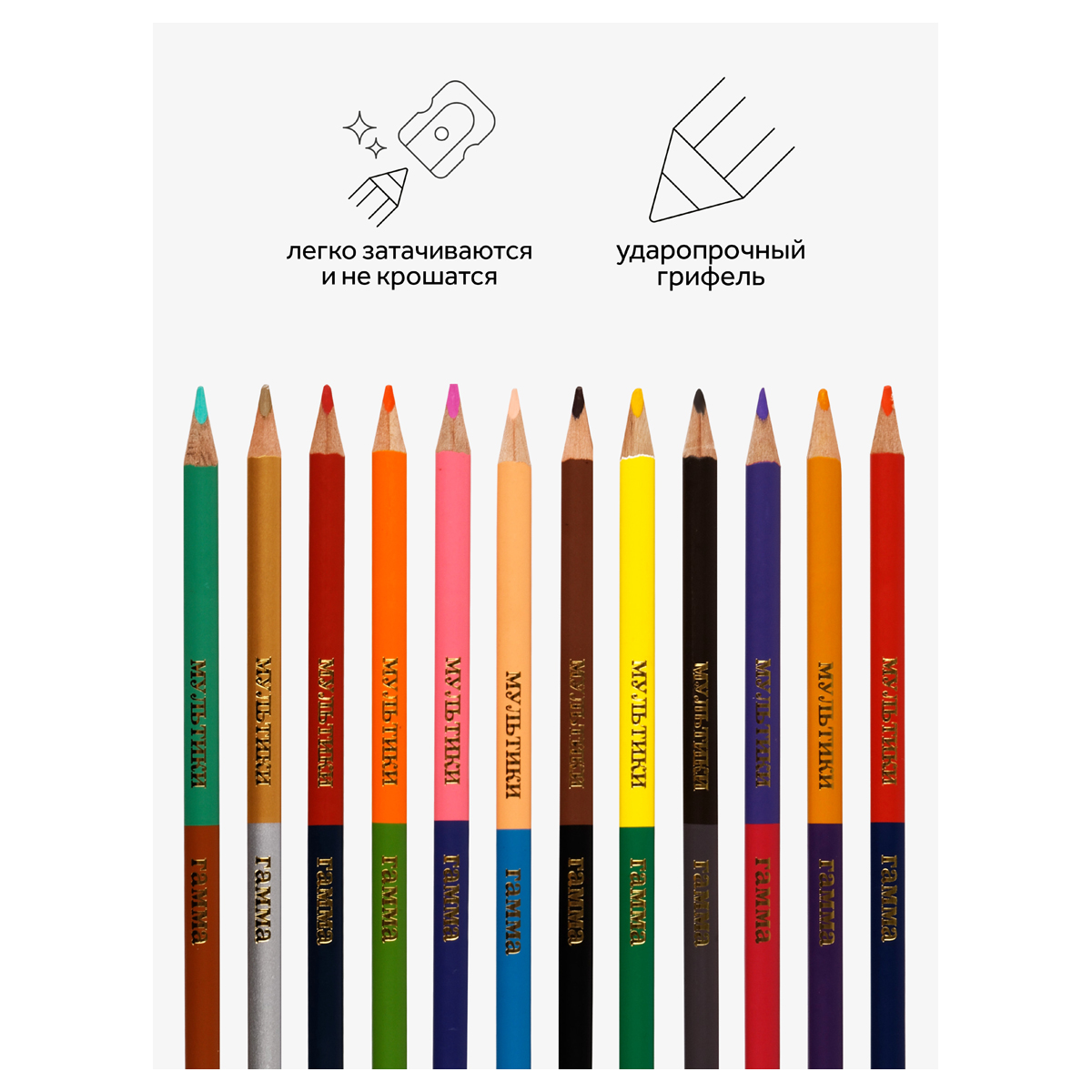 Карандаши цветные двусторонние Гамма "Мультики", 12шт., 24цв., заточен., картон, европодвес
