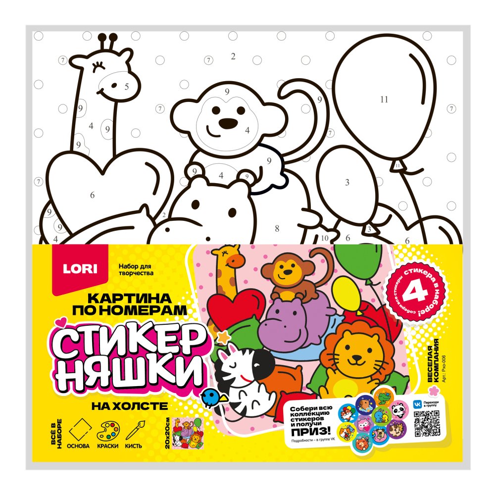 Картина по номерам на холсте 20*20см Стикерняшки "Весёлая компания"