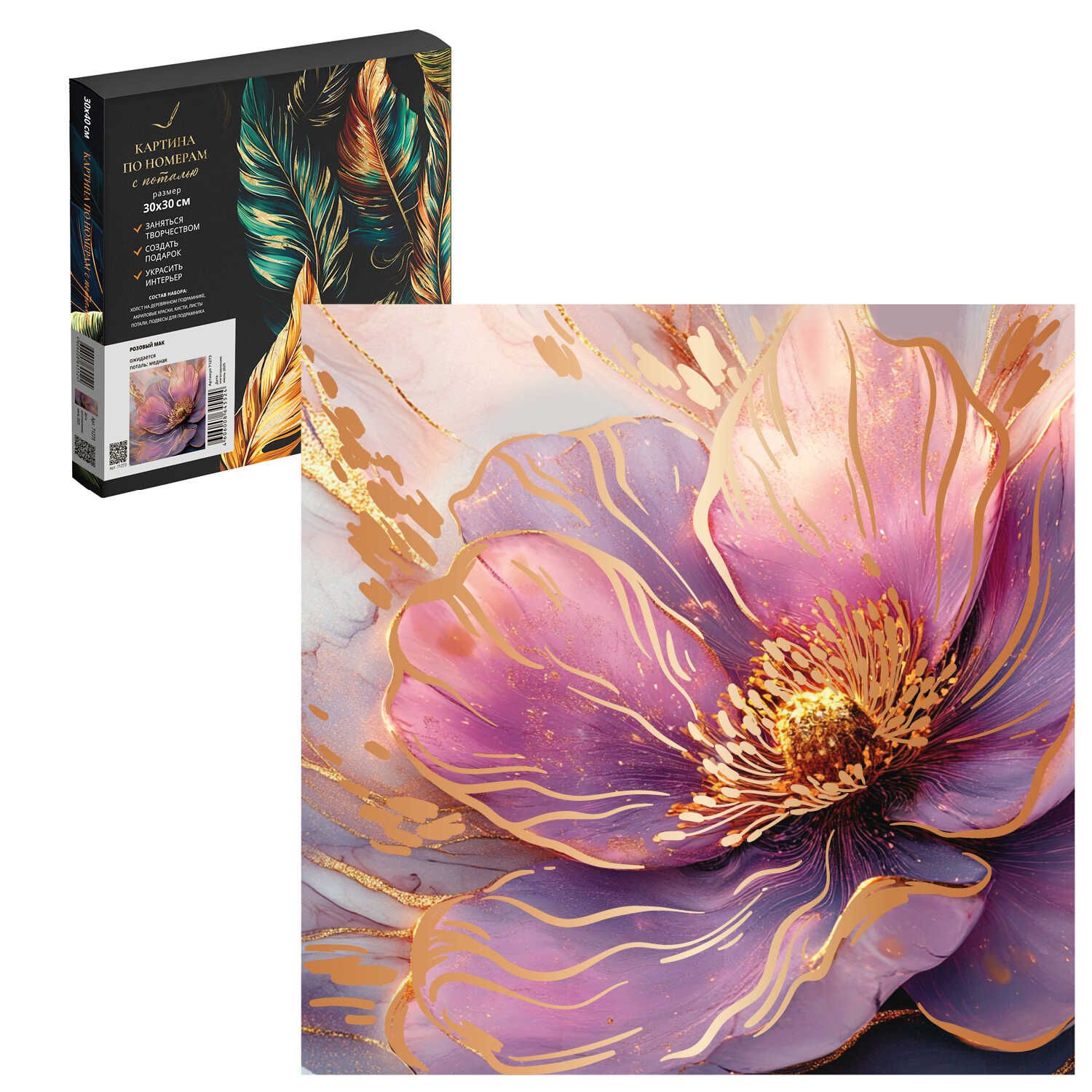 Картина по номерам на холсте с поталью 30*40см "Розовый мак"