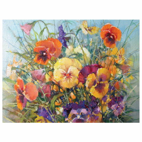 Картина стразами "Букет с анютками" представляет собой эксклюзивный сюжет по картине российского художника Калашниковой Е. В.