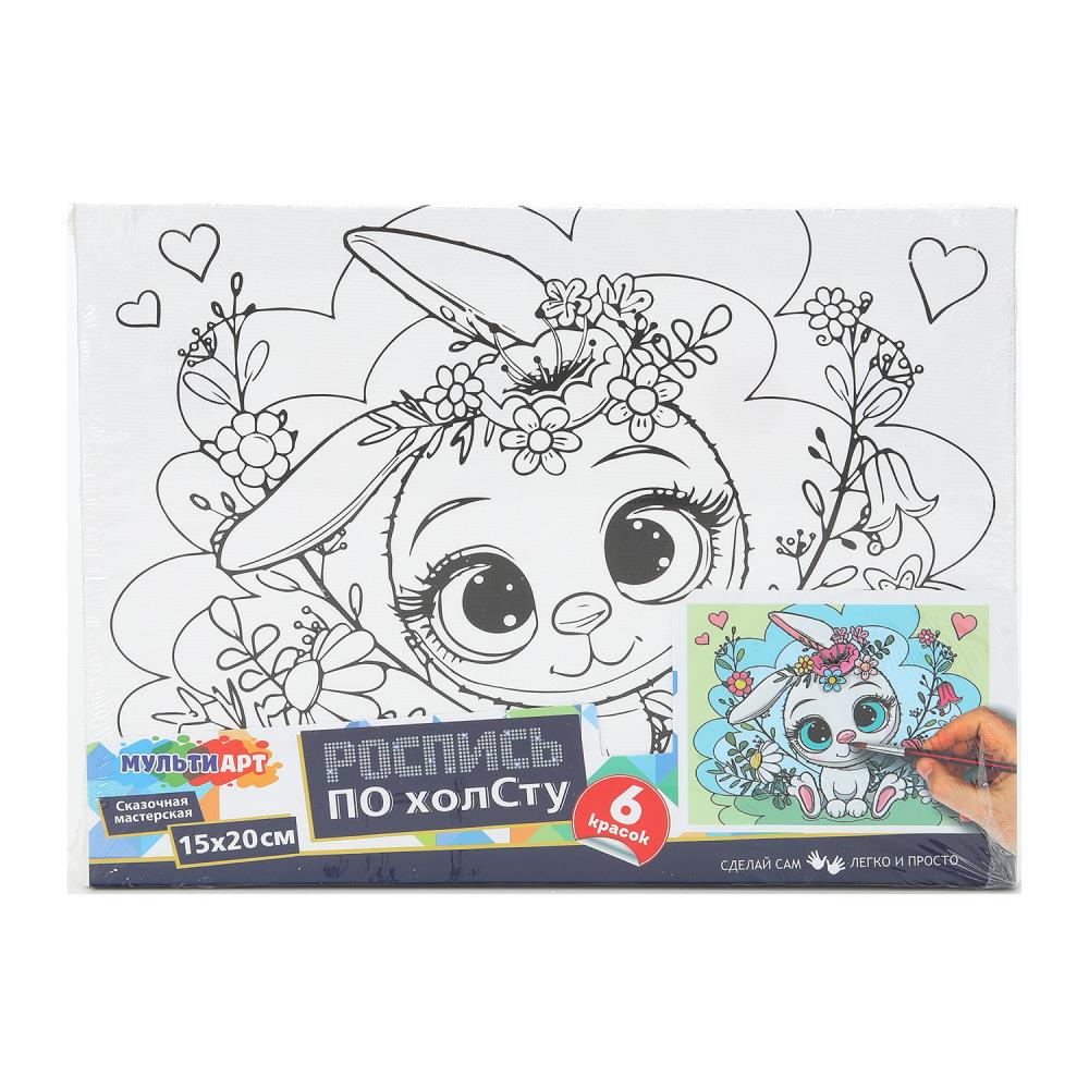 Холст для росписи 15х20 см зайка с цветами МУЛЬТИ АРТ в кор.48шт