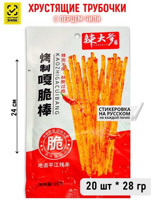 Хрустящие трубочки с перцем чили LADADIE (50189) 28 гр