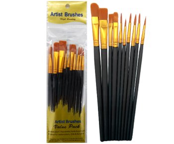 Кисти набор 10шт. Синтетика INTELLIGENT DF-95/DD-64 Круглые №1,2,2/0,3,6 и плоские №2,4,5,5/8,8