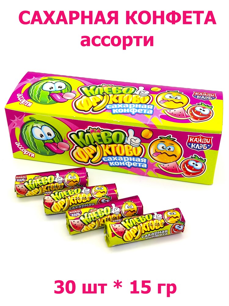 Конфета Клево - Фруктово сахарная ассорти (Канди Клаб) (DRG084) 15 гр*16 бл*30 шт