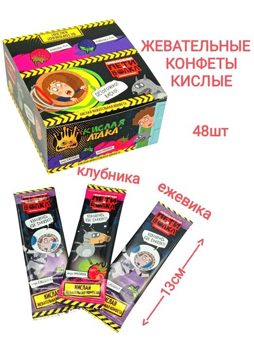 Конфета жевательная КИСЛАЯ АТАКА Приключения Пети и Волка (KA-10-2) 11 гр*12 бл*48 шт