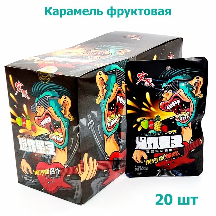 Конфеты Baozhaquoqi Обезьяна с гитарой Фруктовые суперкислые (6470) 28 гр