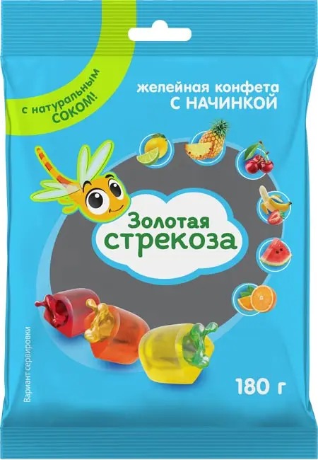 Ассорти вкусов: апельсин, лимон-лайм, клубника-банан, вишня, ананас, арбуз. – С натуральным соком. – На природном загустителе из водорослей.