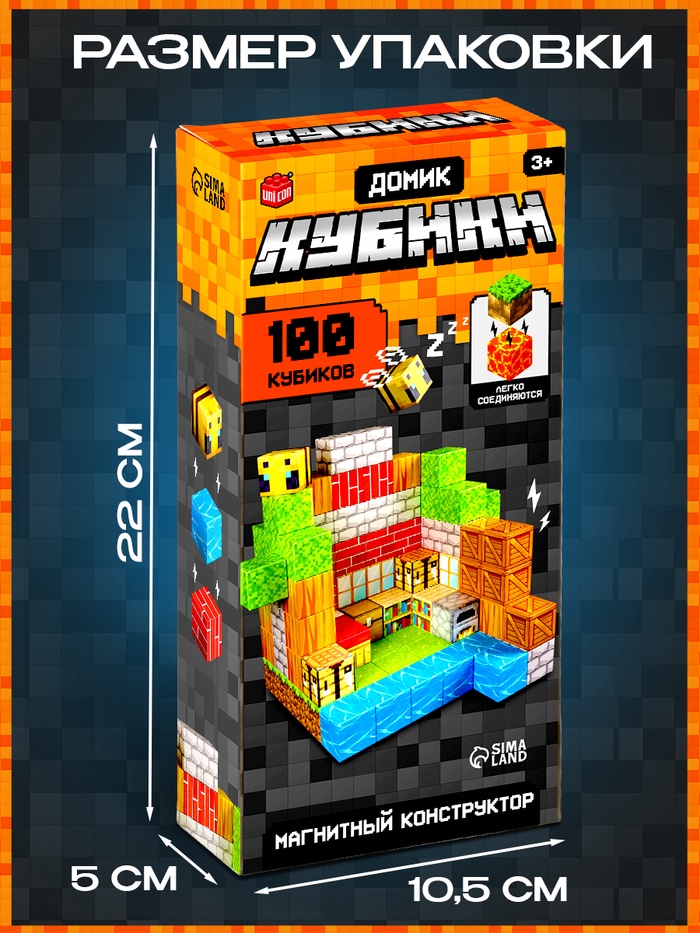 100 кубиков для строительства: из деталей вырастают стены, крыши и мебель. В наборе есть элементы для сборки печки, кровати и сундука — всё, чтобы обустроить жилище и придумывать истории. Прочные магнитные соединения: кубики надёжно сцепляются друг с другом. Ребёнок строит сложные конструкции, которые сохраняют форму во время игры. Процесс сборки интуитивно понятен. Стиль кубических миров: конструктор развивает креативность в знакомом визуальном формате. Дети с лёгкостью переносят игровой опыт в реальность, создавая и улучшая свои постройки.