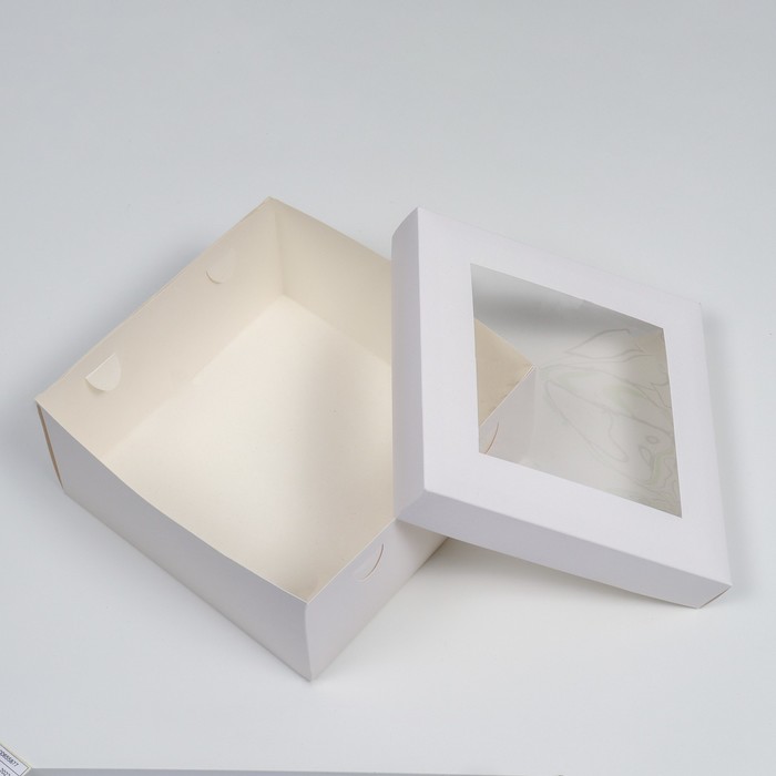 Коробка складная, крышка-дно, с окном, белая, 25×25×12 см