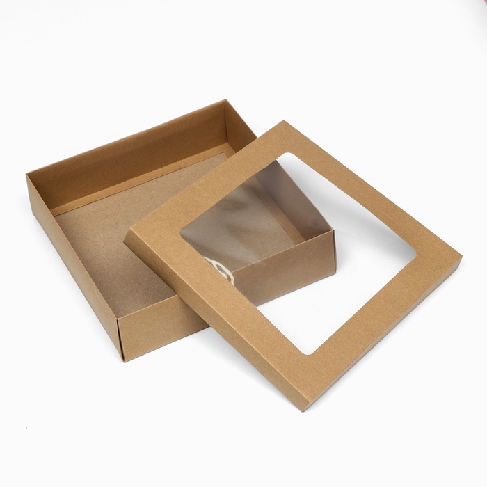 Коробка складная, крышка-дно, с окном, крафт, 30 х 30 х 8 см 9702387