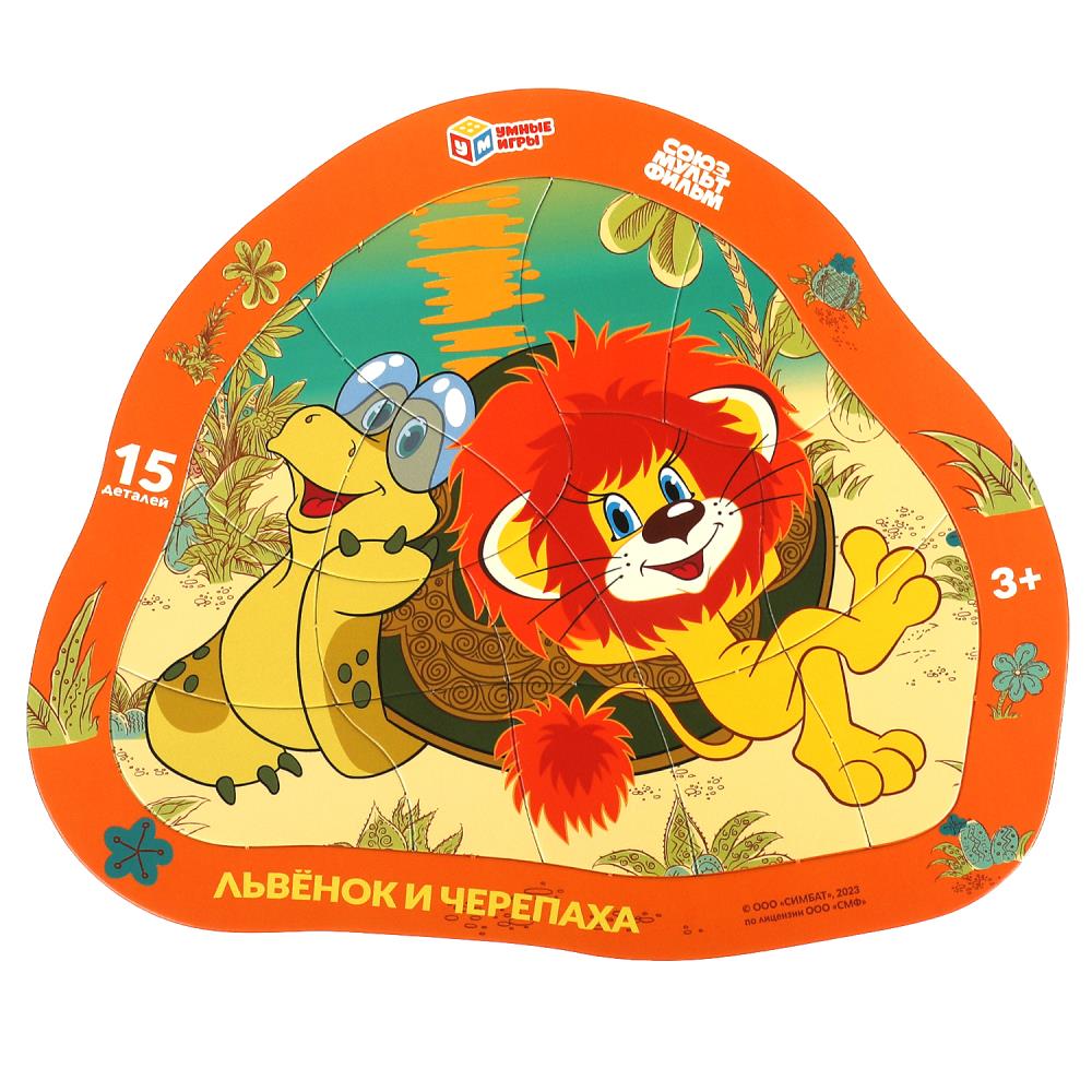 Фигурный пазл в рамке «Львёнок и Черепаха» ТМ «Умные игры» непременно понравится маленькому любознайке: - любимые персонажи - 15 крупных деталей в комплекте - удобная рамка-подложка из плотного картона - красочные цвета - фигурная основа