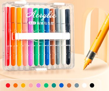 Маркер акриловый 12 цв. DI-173 1-3мм, кисть, круглый цветной корпус с индикатором
