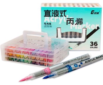 Маркер акриловый 36 цв. DO-75 1-5мм, кисть, корпус с индикатором, в пластиковом боксе