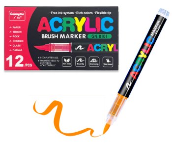 Маркер акриловый GUANGNA №604 "Оранжевый" 1-5мм, кисть, круглый корпус с индикатором, в к/к GN.8101