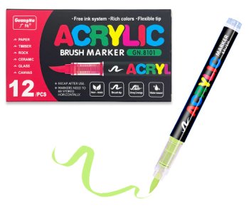 Маркер акриловый GUANGNA №648 "Светло-зеленый" 1-5мм, кисть, круглый корпус с индикатором, в к/к GN.