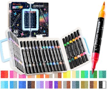 Маркер ГЛИТТЕР 24 шт. 48 цв. DO-270 Двусторонние, кисть, 1-5мм, черный корпус, в пластиковом пенале,