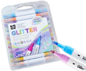 Маркер ГЛИТТЕР 36 цв. DO-89 двусторонние (пулевидный+кисть), 3хгранный белый корпус, в пластиковом б