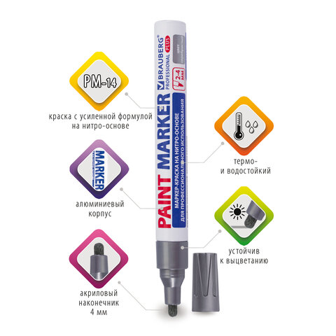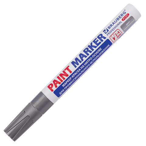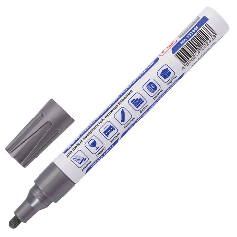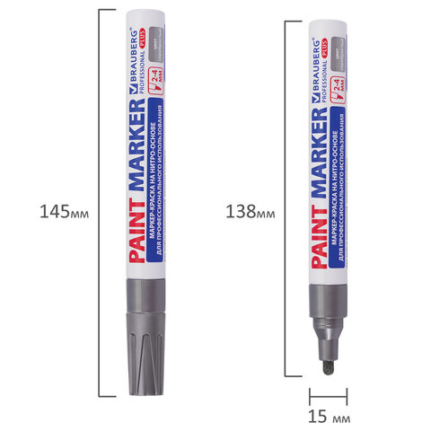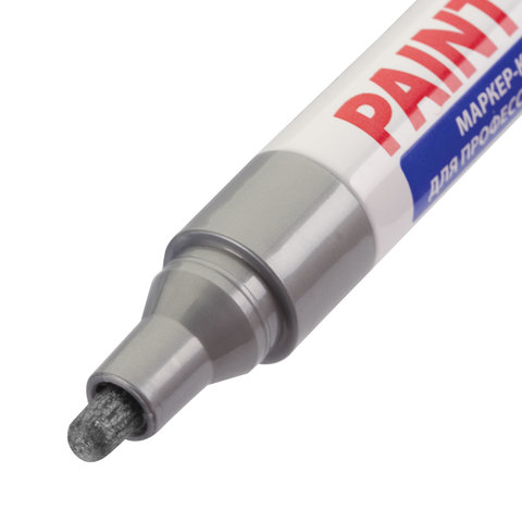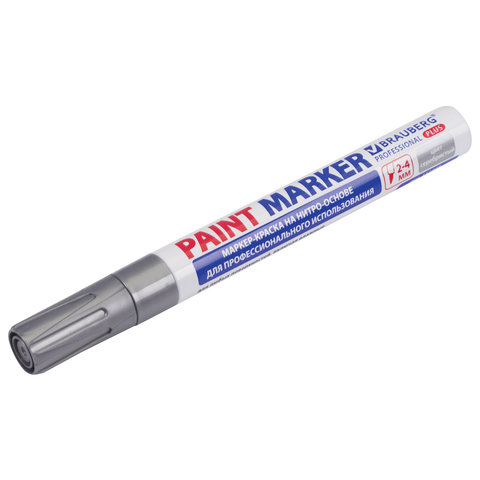 Маркер-краска лаковый (paint marker) 4 мм, СЕРЕБРЯНЫЙ, НИТРО-ОСНОВА, алюминиевый корпус, BRAUBERG